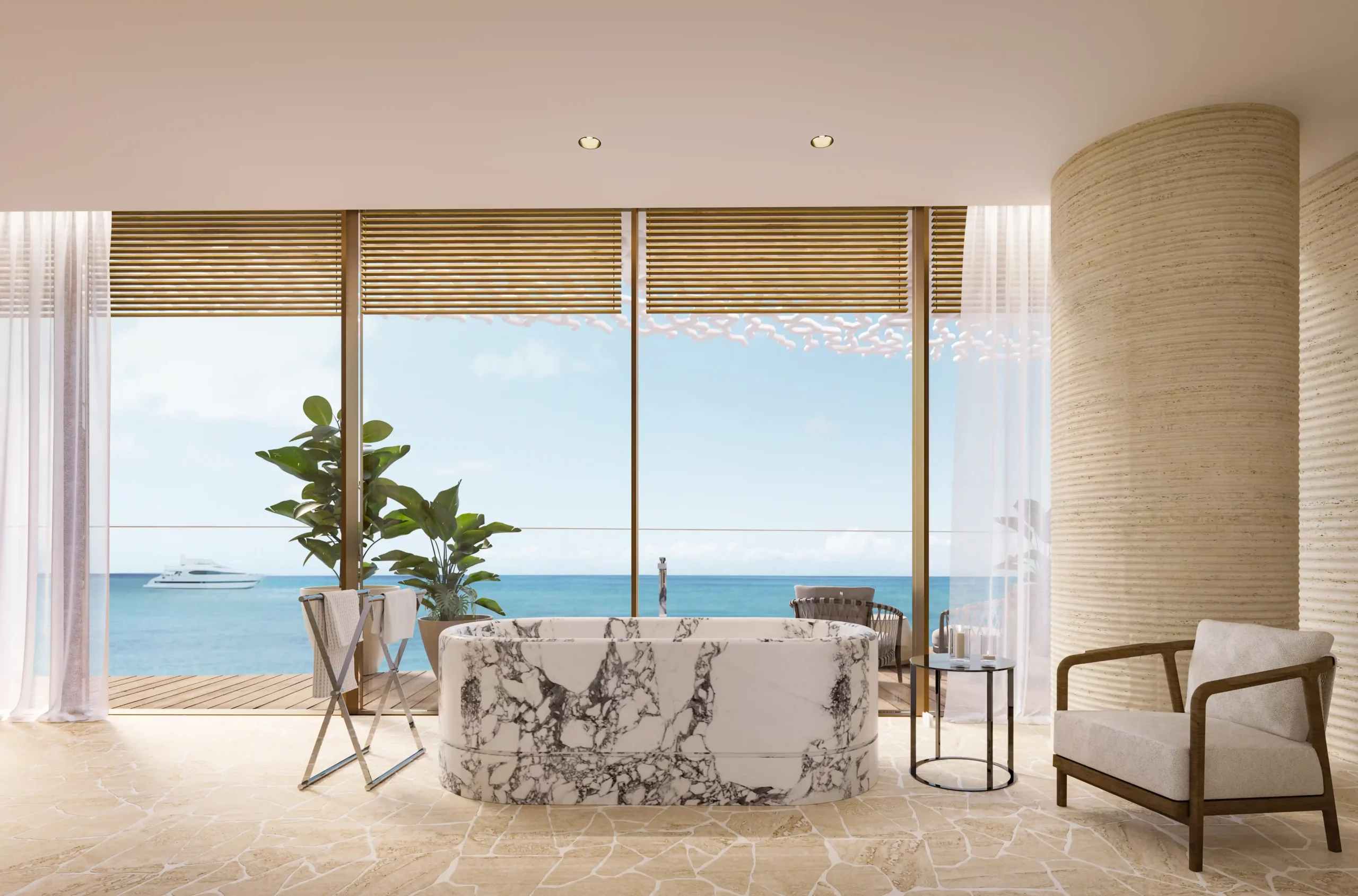 Introducing the Bulgari Lighthouse. Sublime living spaces suspended between sea and sky. Reflecting the Bulgari values of unrivalled craftsmanship, thoughtful precision, and timeless elegance, carefully curated residences are separated by layers of architectural coral that filter light, air and the outside world. A precious natural material, coral is both a practical and metaphorical inspiration for the building design, providing protection, privacy, and peace. A statement home within any collection, the Bulgari Lighthouse provides the perfect retreat, cocooned in coral in the heart of an ever-changing natural canvas.