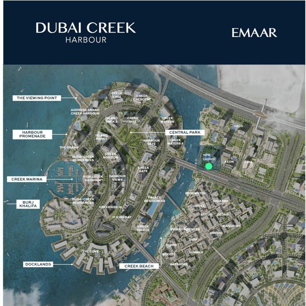 Dubai Creek Harbour is a waterfront community located on the bank of Dubai Creek. The community offers various mix-used developments with a sea view, resorts, a yacht-club and marina, retail spaces and entertainment facilities. Dubai Creek Harbour was developed by Emaar Properties.