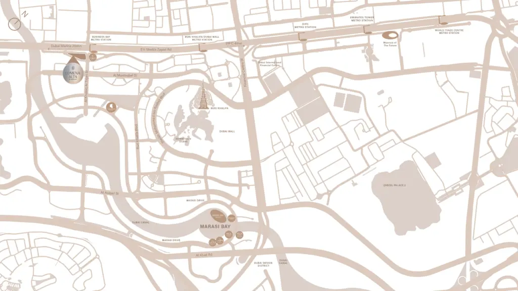 Positioned along the Shaikh Zayed Road at the main gateway to Business Bay, LUMENA ALTA will connect directly to the future Dubai Metro Gold Line. Twin beacons of light and ambition, LUMENA and LUMENA ALTA stand together at the crossroads of connectivity and commerce.