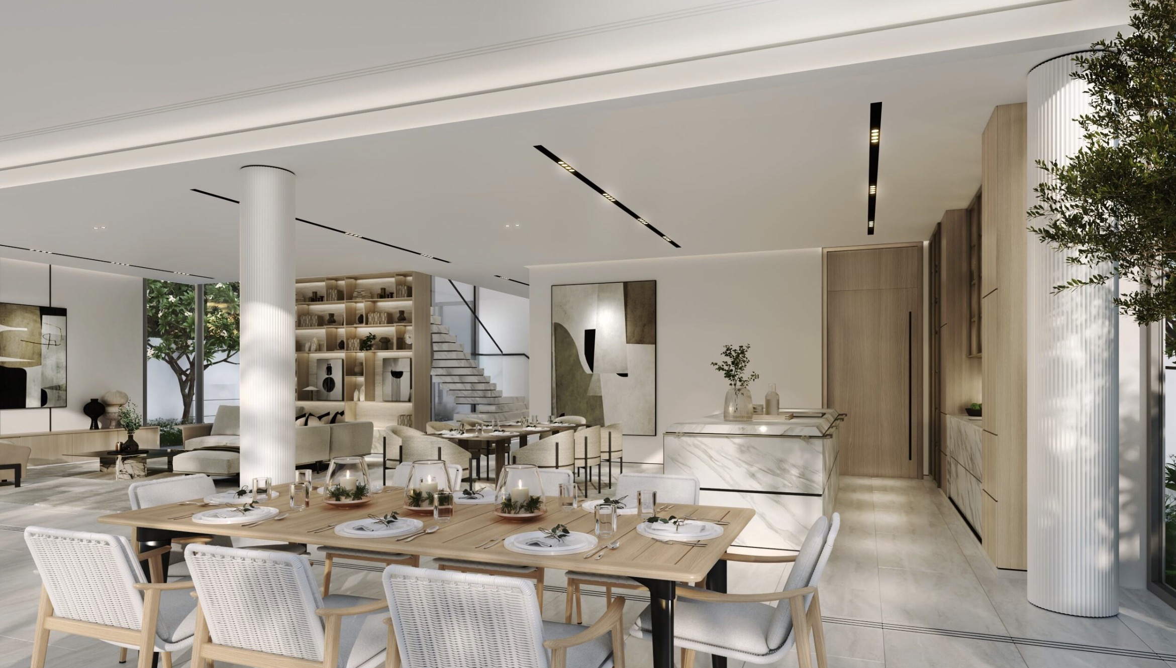 Each exclusive frond forms its own thoughtfully planned private neighbourhood. Discover elegant streets painted in varying shades of green. Lush, layered flora merges with carefully curated foliage to create a perfectly harmonious residential landscape directly on the beachfront.